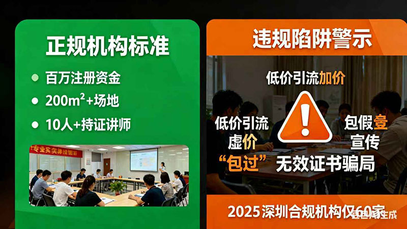 另一方面,市場亂象仍需警惕:一是“低價速成班”陷阱,部分機(jī)構(gòu)以1500元以下低價引流,后續(xù)強(qiáng)制收取“實操費”“??假M”,累計費用可達(dá)初始報價的3倍;二是“包過”虛假宣傳,2025年深圳消防救援支隊已明確“所有消防證書均需通過國家統(tǒng)一考試”,此類宣傳均屬違規(guī);三是“無效證書”騙局,部分機(jī)構(gòu)頒發(fā)“協(xié)會認(rèn)證證書”,非國家目錄內(nèi)資質(zhì),無法作為上崗依據(jù)——2025年上半年深圳已查處此類“皮包機(jī)構(gòu)”28家,涉及學(xué)員超300人。