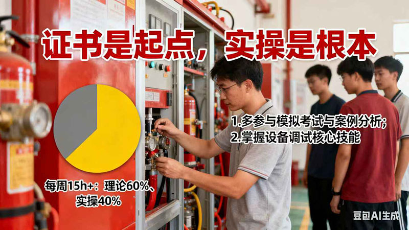消防行業(yè)的競爭力永遠(yuǎn)是“懂理論、會操作、能應(yīng)急”的硬實力——正如某機(jī)構(gòu)學(xué)員反饋:“手把手學(xué)到的消防水泵調(diào)試技巧,比單純的考點記憶更有用”。建議大家備考期間,每周保證15小時以上學(xué)習(xí)時間,其中實操練習(xí)占比不低于40%,多參與模擬考試與案例分析,真正將消防規(guī)范融入日常操作。