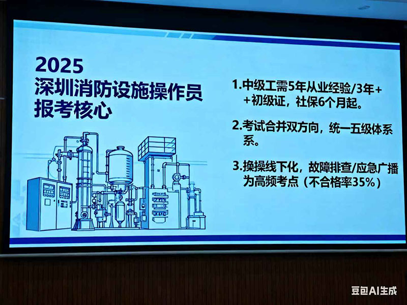 各位學(xué)員好,我是從事消防技術(shù)培訓(xùn)十余年的技術(shù)老師,今天結(jié)合深圳地區(qū)2025年消防設(shè)施操作員證書報考的最新動態(tài),從專業(yè)角度為大家拆解這一準(zhǔn)入類職業(yè)資格證書的報考關(guān)鍵——作為消防一線實操崗的“入門必備證”,2025年深圳的報考政策、考試形式均有明確調(diào)整,需重點關(guān)注數(shù)據(jù)化的要求與變化,才能少走彎路。
